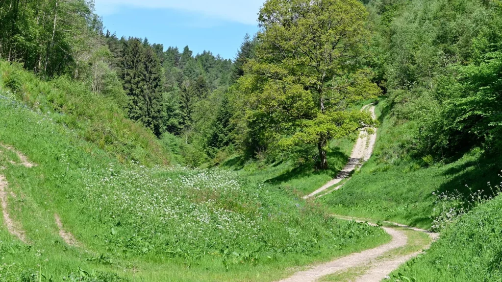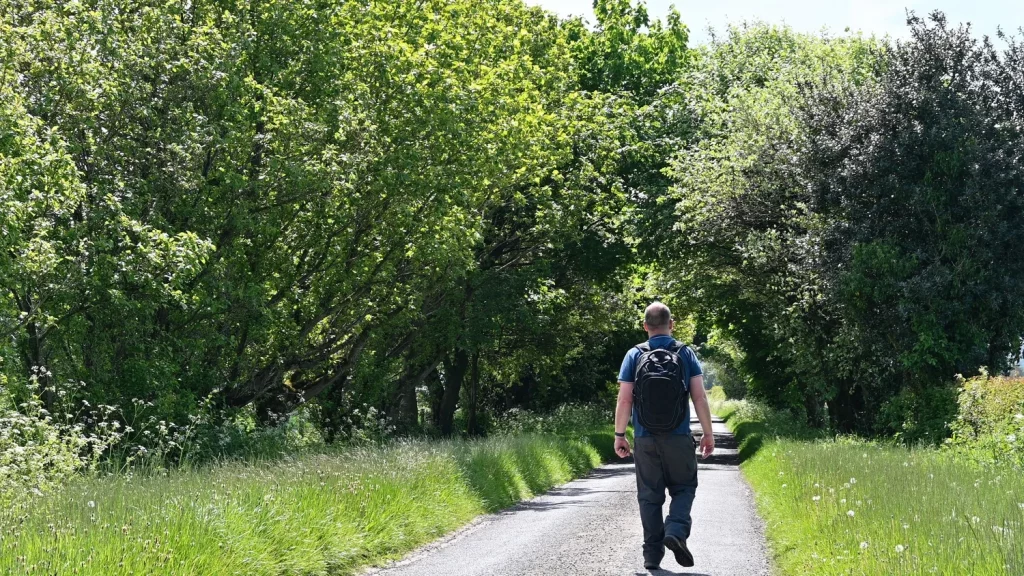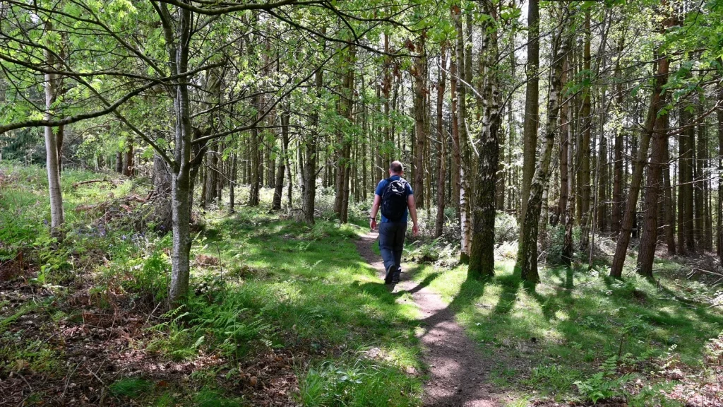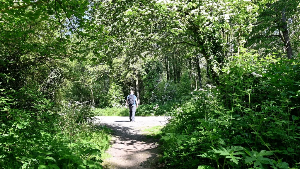 The route is main easy to follow. However, when you arrive at the top of the hill, follow the sign left and walk around the edge of the woodland and fields until you reach the path to Braxton’s Sprunt (country lane).