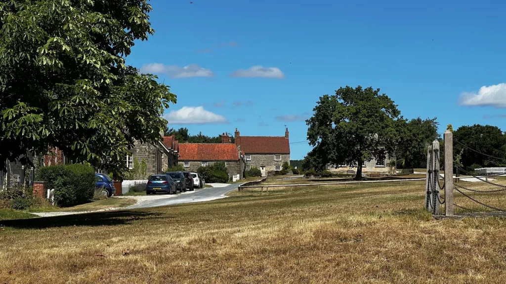 Once you reach the crossroads, we need to turn right and walk towards Coneysthorpe, an idyllic village part of the Castle Howard estate. The Castle Howard Lakeside Park will now be on your right hand side before you reach the village. It is characterised by its charming, traditional stone cottages, a quaint village green, and a peaceful rural atmosphere, all in a Georgian style.