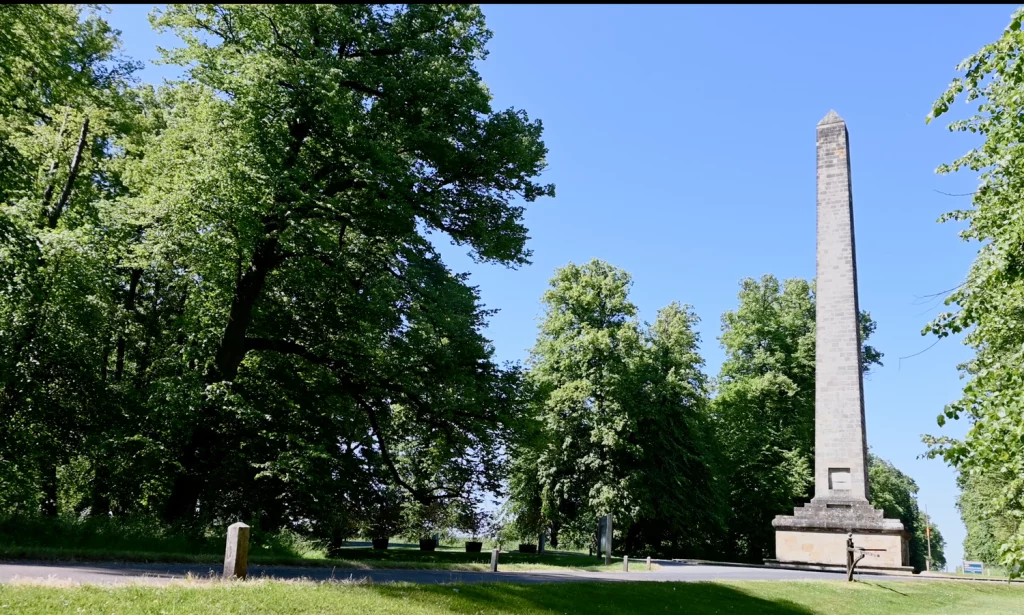 We need to make our way down the drive towards the obelisk. The obelisk is a large stone monument designed in the classical style. It was erected in 1714, making it one of the earliest large-scale garden monuments in England, standing around 70 feet (21 meters) tall and is made from local stone.