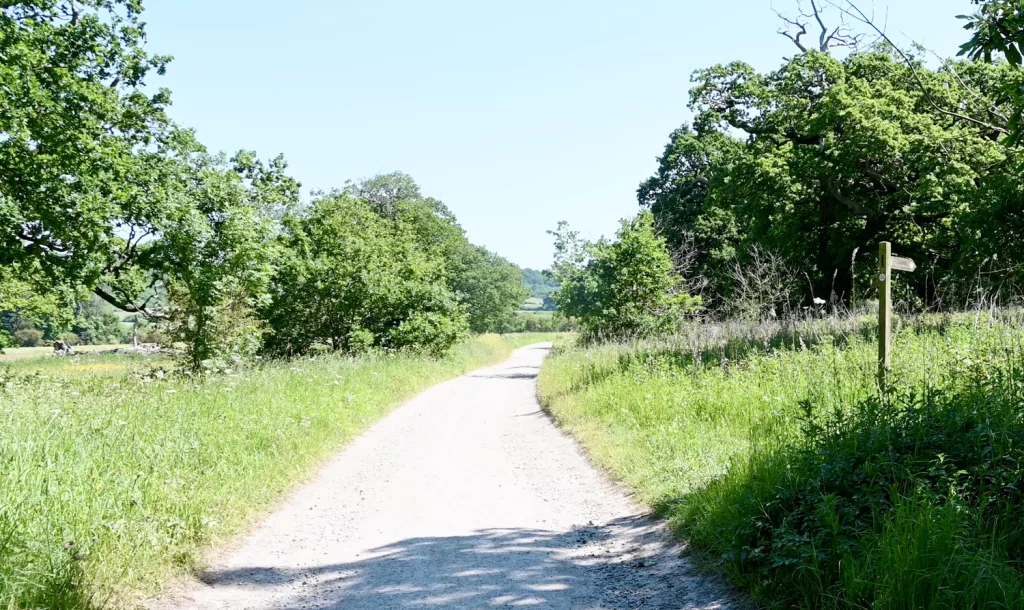 On the right side of the road, you will see a public right of way with a signpost for Bog Hall. We need to follow this track across a large expanse of green pasture. If you have your canine chums with you, you may need to keep them on a leash as there are grazing animals around. However, this is a very dog friendly route to be sure.