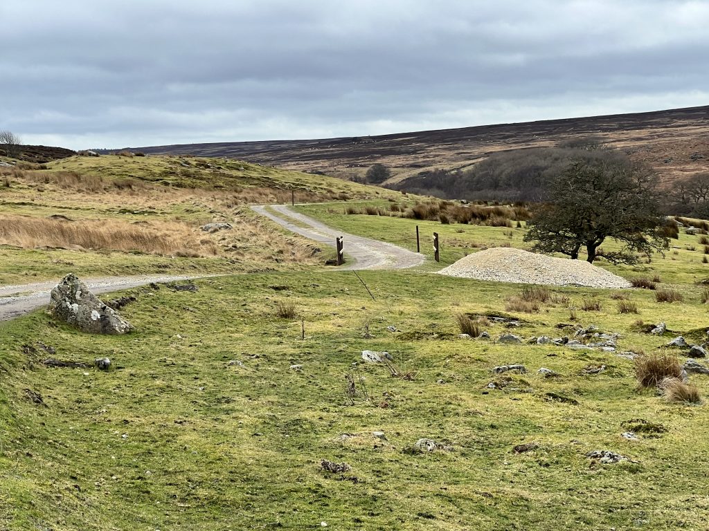 You will eventually arrive at Moorgate and here we go through the large white farmers gate and we turn left downhill.