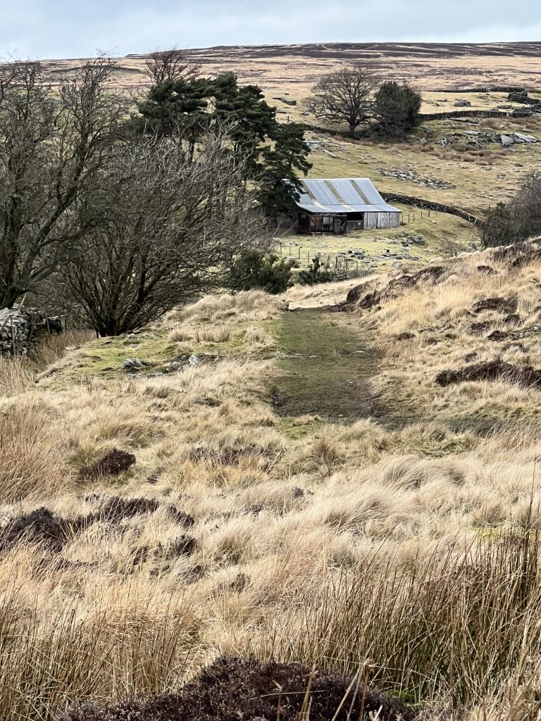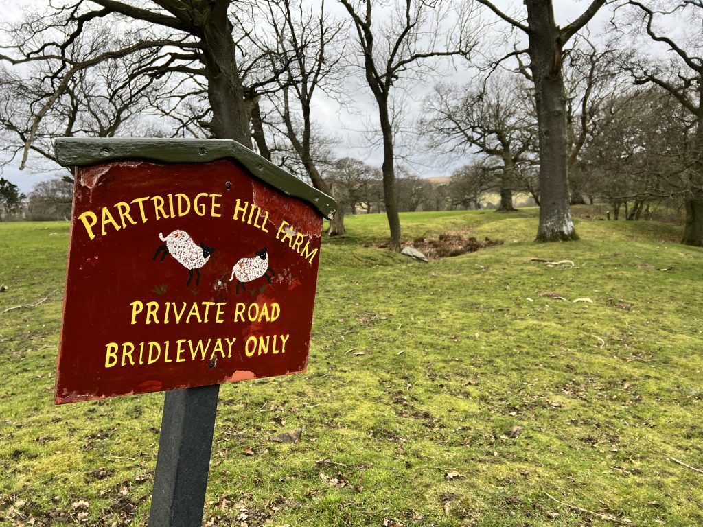 After crossing the stepping stones if the beck is flowing, follow the track up the hill with Partridge Hill Farm on the left. The track takes you beside the farm buildings.