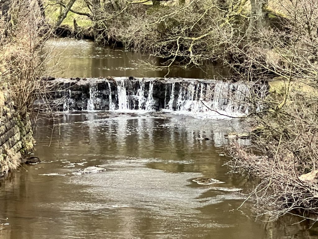 At the station, follow the road uphill over the bridge that spans Eller Beck. You will see the former Mill House on your right as well as the weir on the left.
