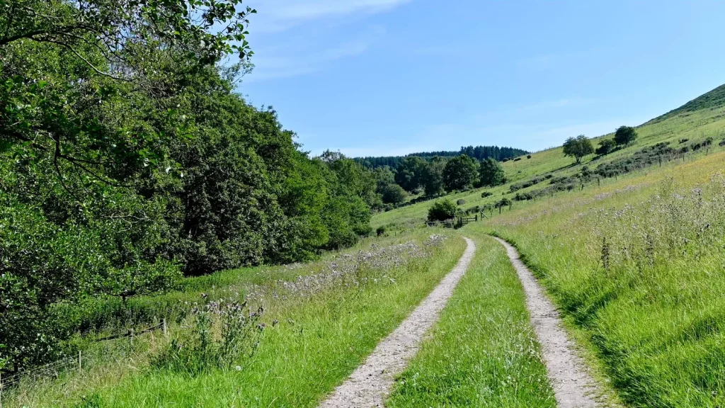To return back to Thornton Le Dale via Ellerburn, cross over one of the footbridges on Eller Beck as aforementioned, and turn left following a path through a very idyllic valley. Again, Eller Beck is always at the left of you although you might not be able to see it at times. Keep following this path until it merges with another track. At this junction, turn left and keep following this until you reach a woodland.
