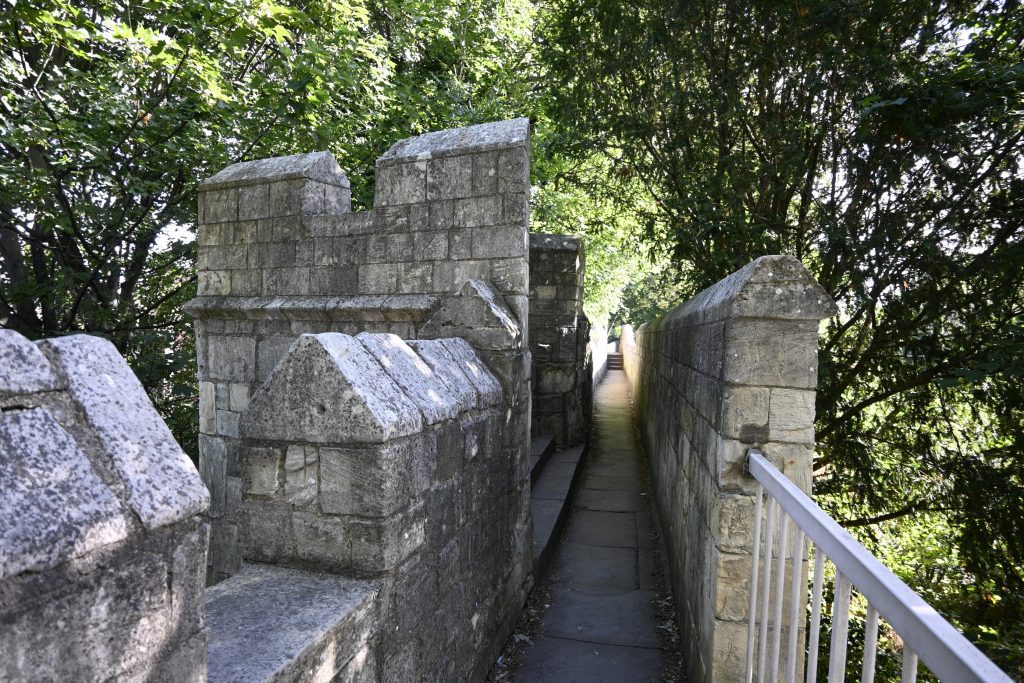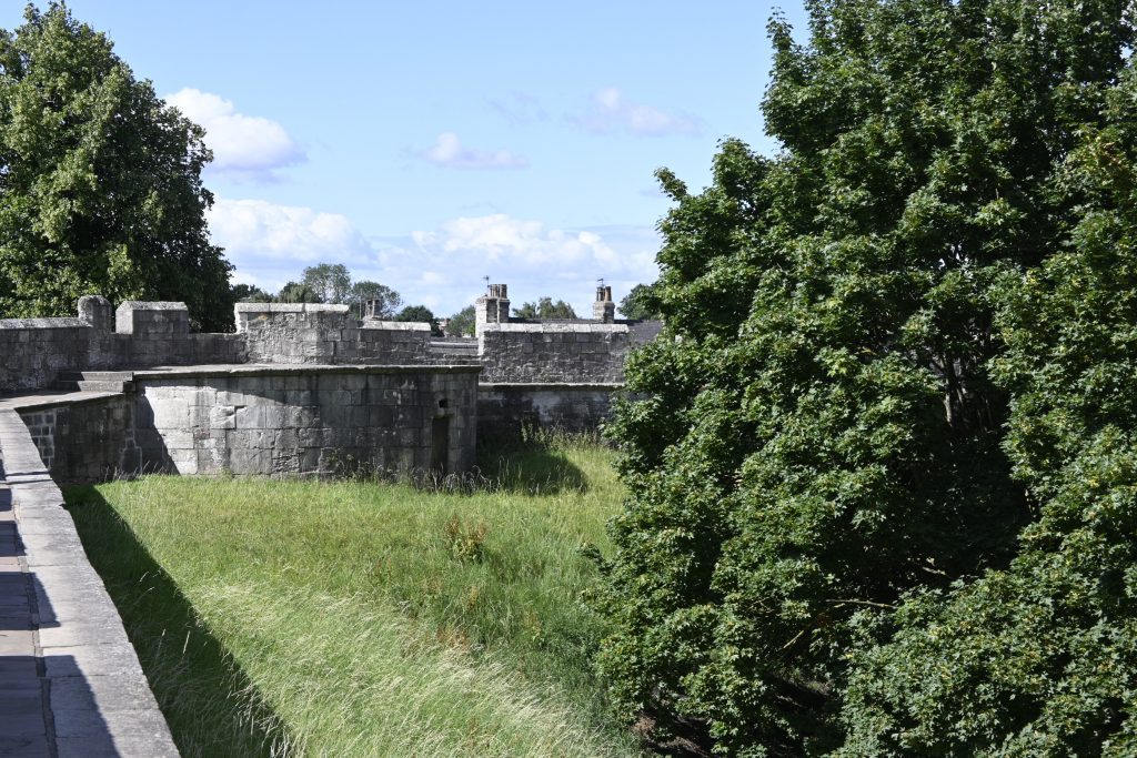 The walls now bend to the right and follows Lord Mayor’s Walk.