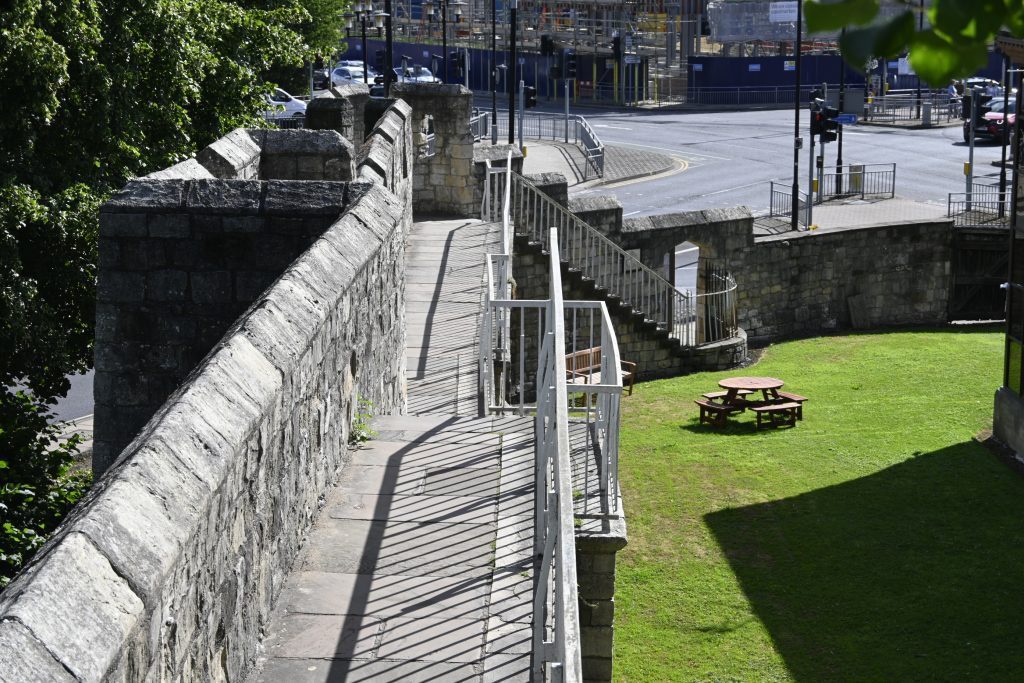 This section of the walls does contain some steps although they can be managed easily. Follow the walls until you reach Walmgate Bar.